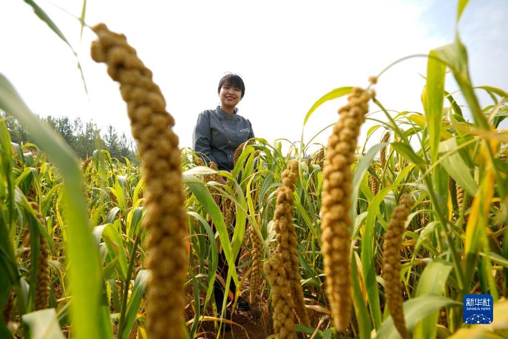刘甜恬站在北京市密云区金叵罗村快要收获的谷子地里(2022年9月28日摄)。