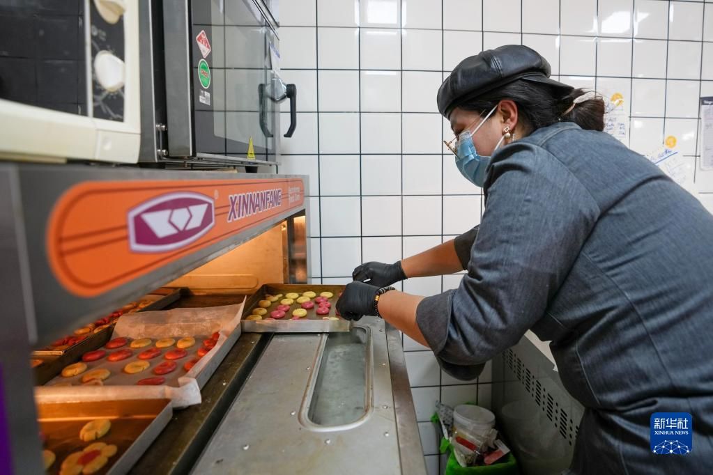 3月7日,刘甜恬在烤制客人制作的小米酥。