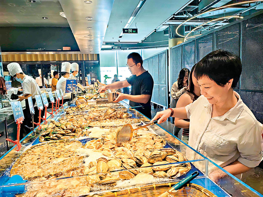 香港游客在内地一家自助餐厅捞起新鲜海鲜。香港《文汇报》