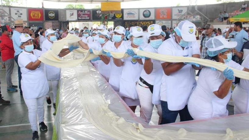 尼加拉瓜“TN8”电视台网站报道,当日,在多功能广场(Cancha multiuso),80名女厨师从凌晨开始准备食材,使用540加仑牛奶和200磅奶油,制作出了长达2500米的奶酪玉米卷饼,总长度超过了去年的2000米,为现场超5000名来宾带来了一场尼加拉瓜本土美食盛宴。