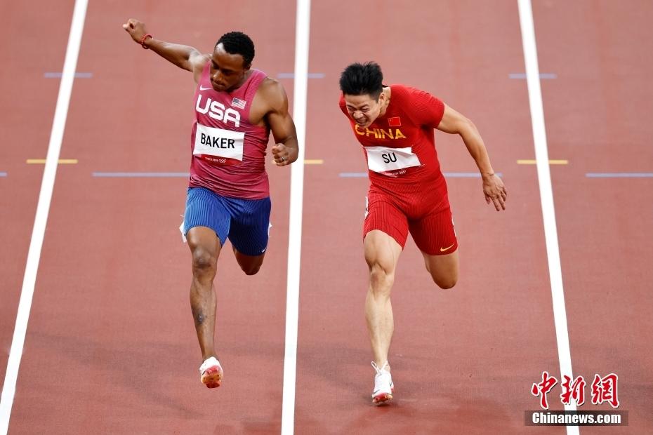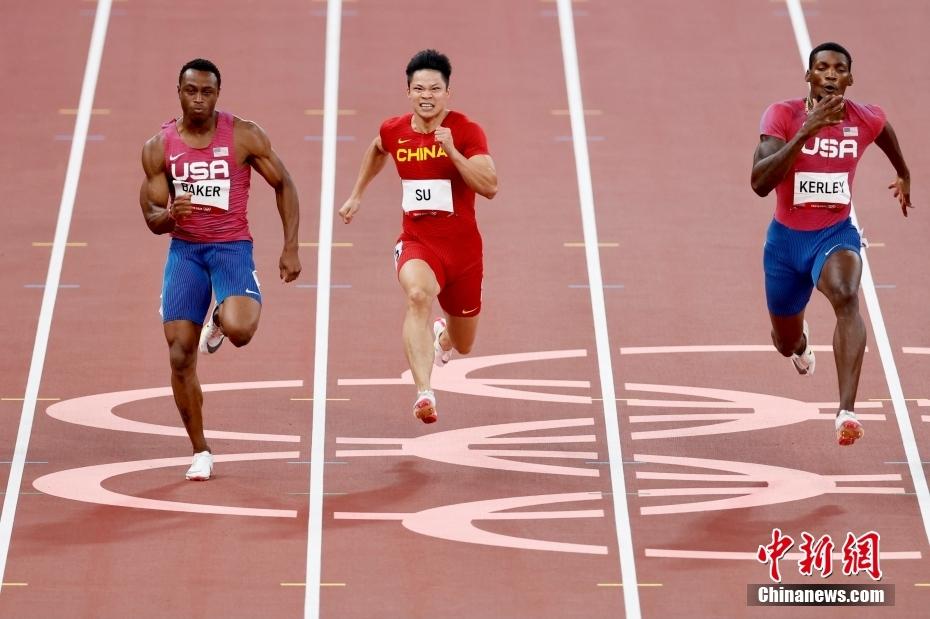 8月1日,32岁的中国飞人苏炳添以9秒83的成绩在男子100米半决赛中打破亚洲纪录,并在决赛中以9秒98的成绩位列第六名,成为首位闯进奥运男子百米决赛的中国人。图为苏炳添在比赛中。