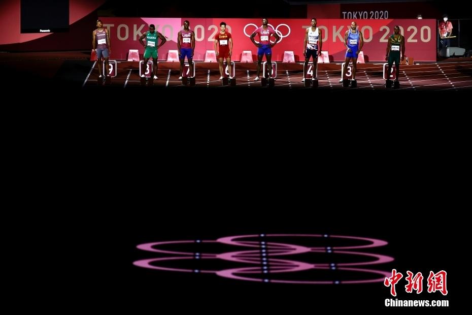 8月1日,32岁的中国飞人苏炳添以9秒83的成绩在男子100米半决赛中打破亚洲纪录,并在决赛中以9秒98的成绩位列第六名,成为首位闯进奥运男子百米决赛的中国人。图为男子100米决赛开赛前。