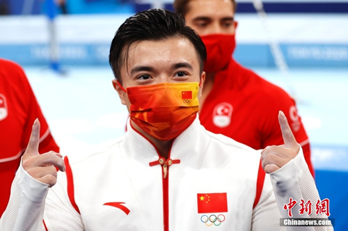 8月2日,在东京奥运会男子体操单项吊环的比赛中,中国选手刘洋以15.500分夺得冠军。中新社