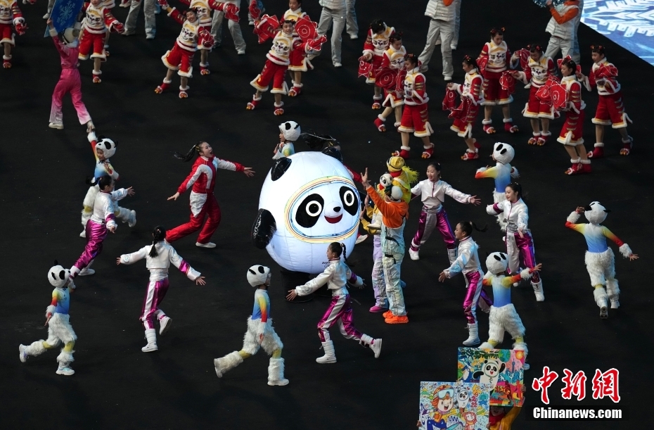 图为开幕式上出现的本次2022北京冬奥吉祥物之一的“冰墩墩”。中新社记者 崔楠 摄