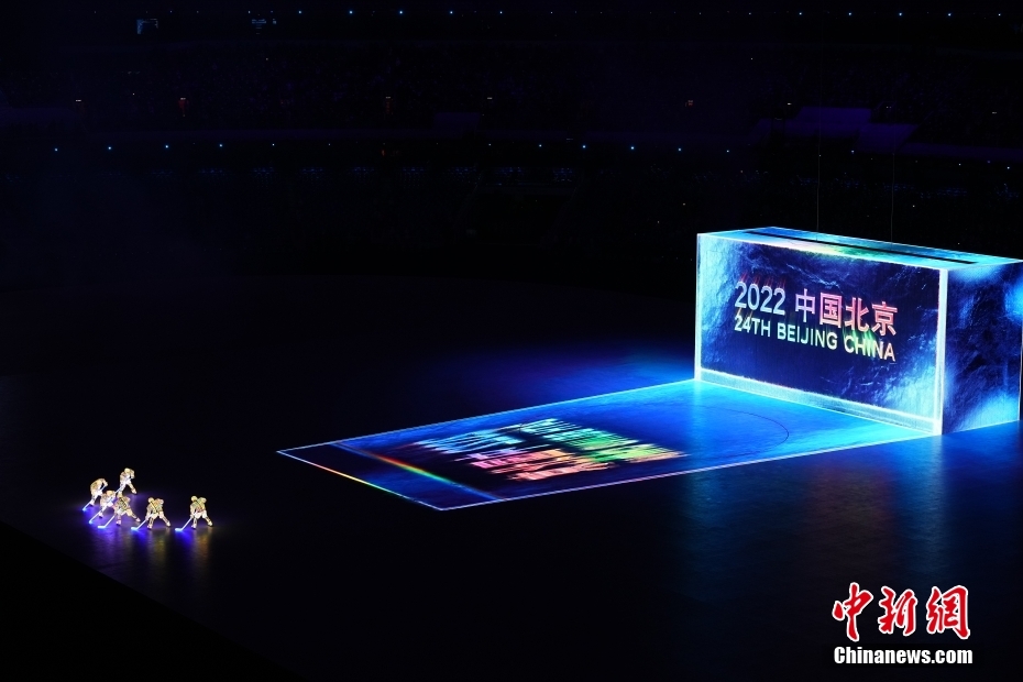 开幕式突出全人类共有的精神和理念,一起向未来,是“我们”一起向未来。图为开幕式上的“构建一朵雪花”环节。 中新社记者 崔楠 摄