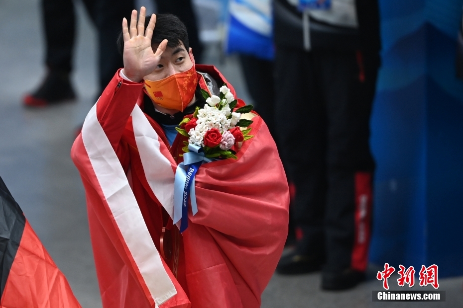 11日,北京冬奥会男子钢架雪车比赛结束争夺,中国选手闫文港以四轮4分01秒77的成绩摘得铜牌,创造了中国选手在这一项目的历史最好成绩。图为中国选手闫文港身披国旗。