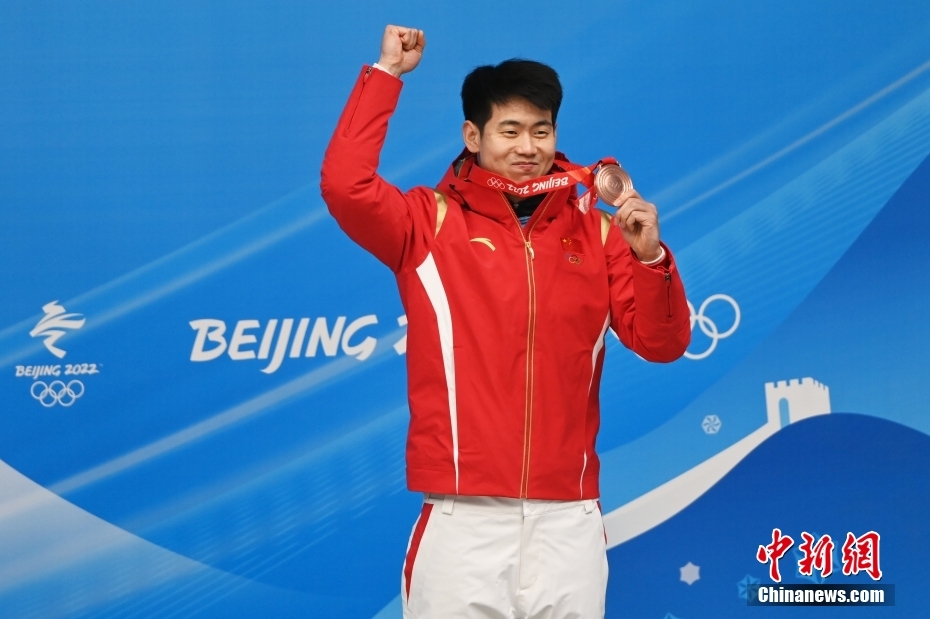 11日,北京冬奥会男子钢架雪车比赛结束争夺,中国选手闫文港以四轮4分01秒77的成绩摘得铜牌,创造了中国选手在这一项目的历史最好成绩。图为中国选手闫文港获得铜牌。