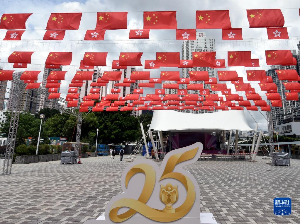 6月28日在香港街头拍摄的庆祝香港回归祖国25周年街景。新华网