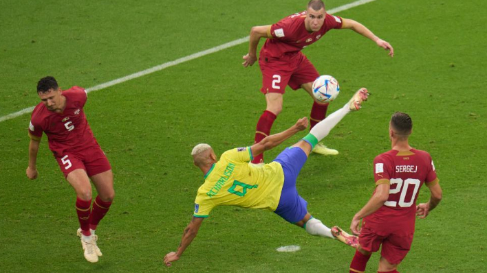 24日对阵塞尔维亚队的第二个进球,堪称本届世界杯迄今最精彩的进球。理查利森从把球挑起到转身腾空倒钩,几个动作连续流畅,兼具速度,具有极高的美感,此球将成为本届世界杯最佳进球的候选之一。
