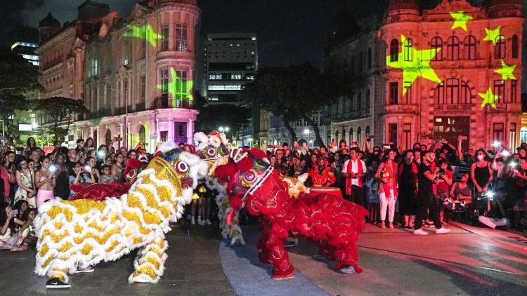 新华社报道,2023年春节前夕,上千名巴西民众在累西腓地标——零点广场上观看了精彩的歌舞表演和灯光秀,共同迎接中国农历新年的到来。