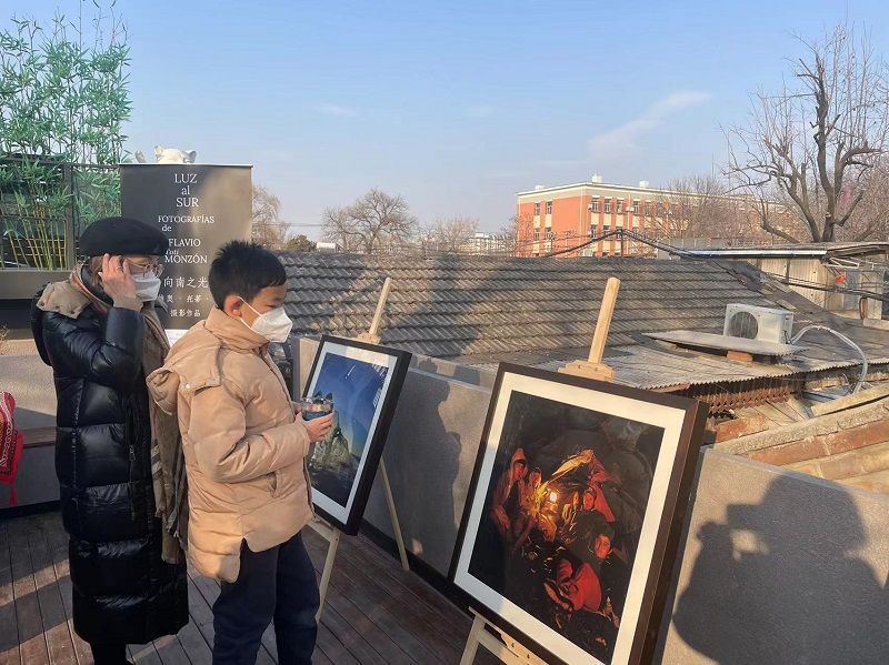 参观者在北京MULU穆禄餐厅观看摄影展。南美侨报特约记者林飞