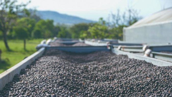 巴拿马奇里基省博克特地区的彼德松家族庄园内正在晾晒的咖啡豆。新华社