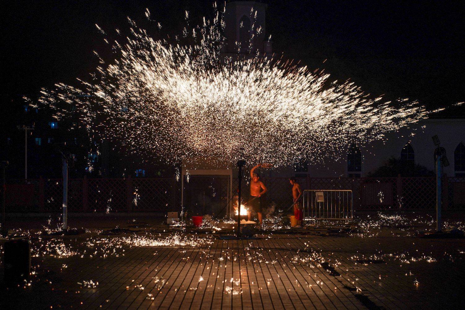 新华社报道,作为中国国家级非物质文化遗产代表性项目之一,“打铁花”是中国古代匠师们在铸造器皿过程中发现的一种民俗文化表演技艺,至今已有千余年历史。