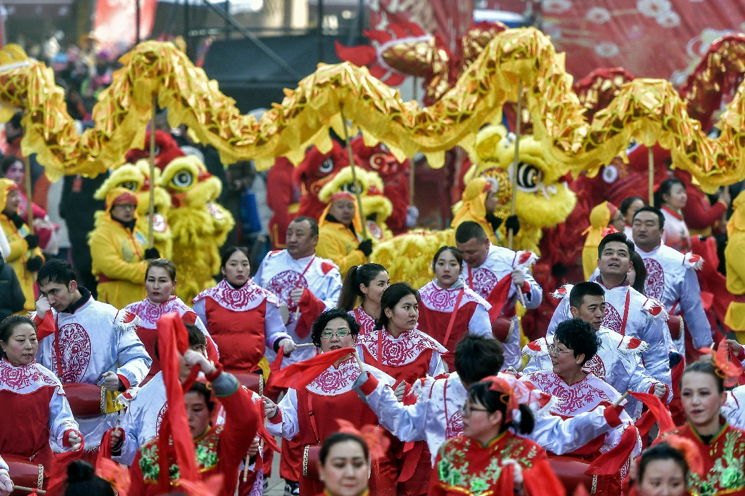 除了逛庙会,“耍社火”也是春节期间重要的民俗活动,以舞狮、舞龙、秧歌等民间文艺形式展现。