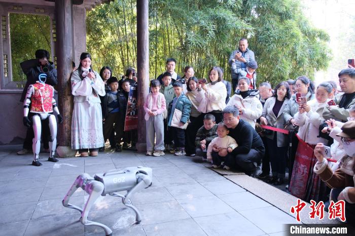 1月30日,民众与机器人合影留念。中新网