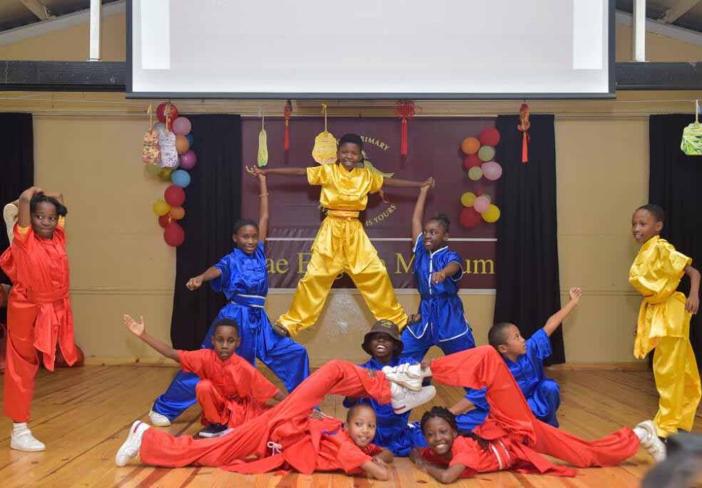 1月29日,在博茨瓦纳首都哈博罗内的丽海国际小学,当地学生表演中国功夫。