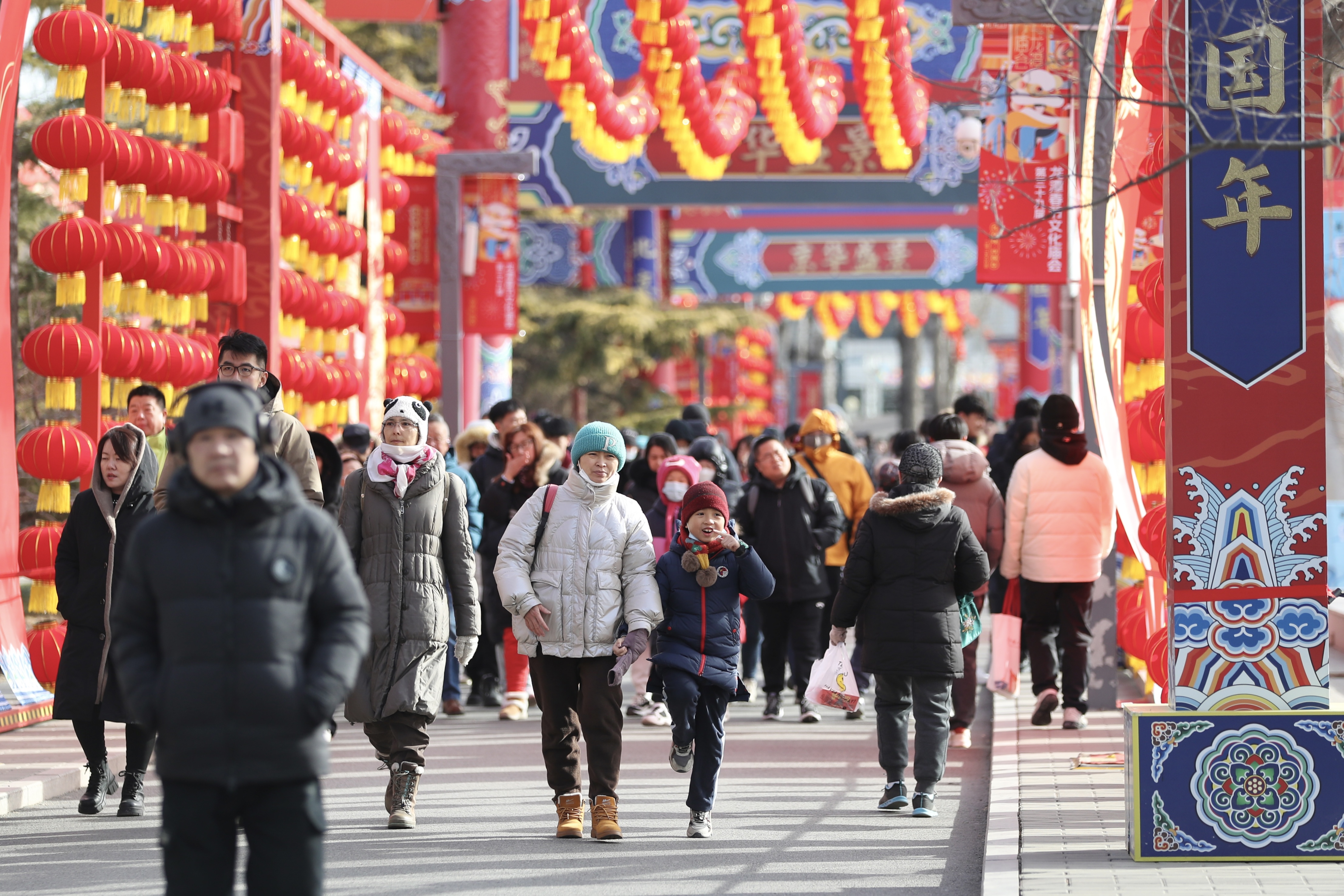 2月4日,人们在内蒙古呼和浩特市玉泉区大召广场游玩。新华社