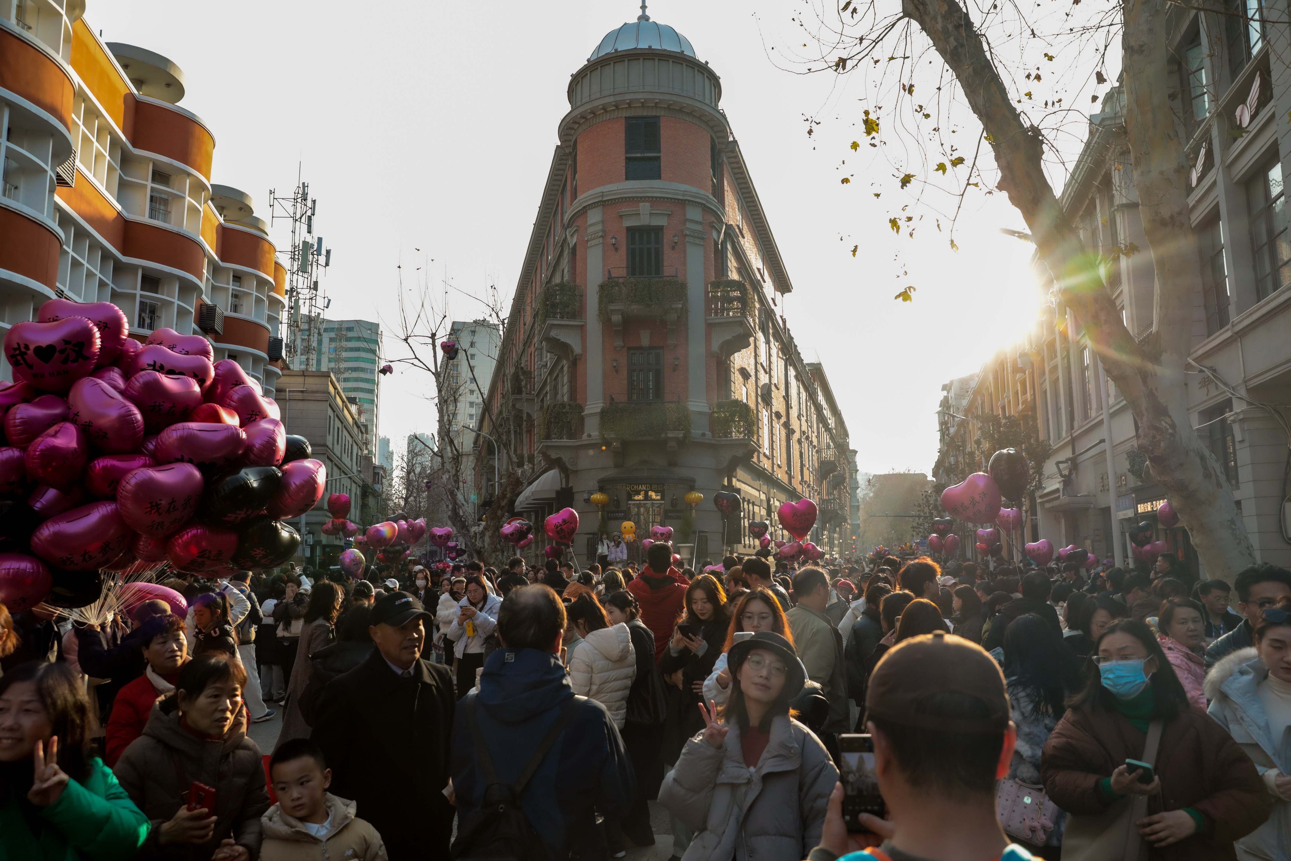 2月4日是中国春节假期的最后一天,各地民众游兴不减,以丰富多彩的形式乐享假期。图为2月4日,湖北武汉江汉路步行街和汉口历史风貌区游人如织。中新社