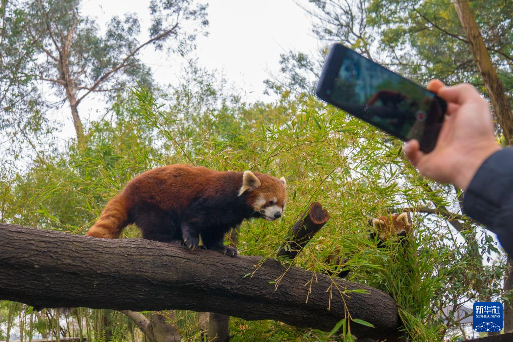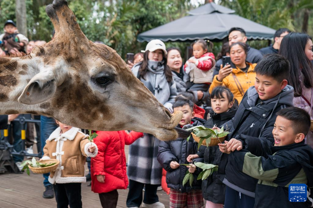 2月4日,游客在云南野生动物园与动物互动。新华社