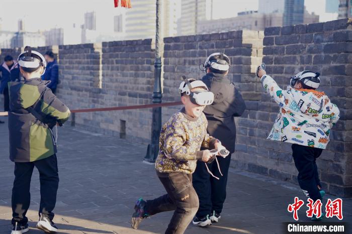 2月4日,在陕西西安,众多游客、市民纷纷走上西安城墙,在阳光下享受假期时光。中新网