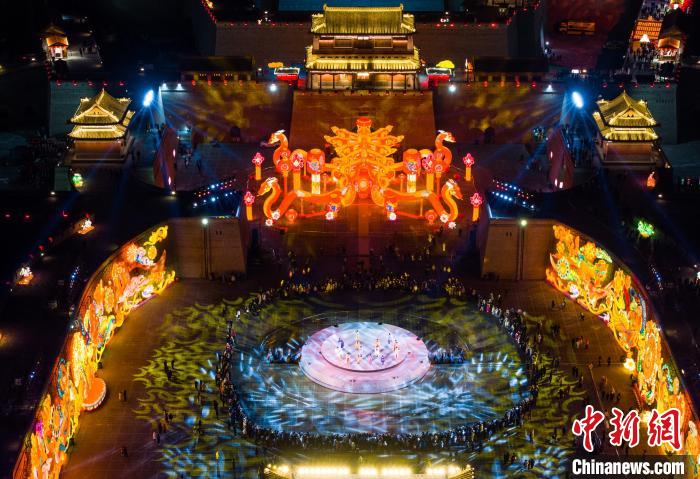 2月4日,山西大同古都灯会璀璨夺目,吸引游客参观游览。图为人们在南城墙关城内观看文艺表演。中新网