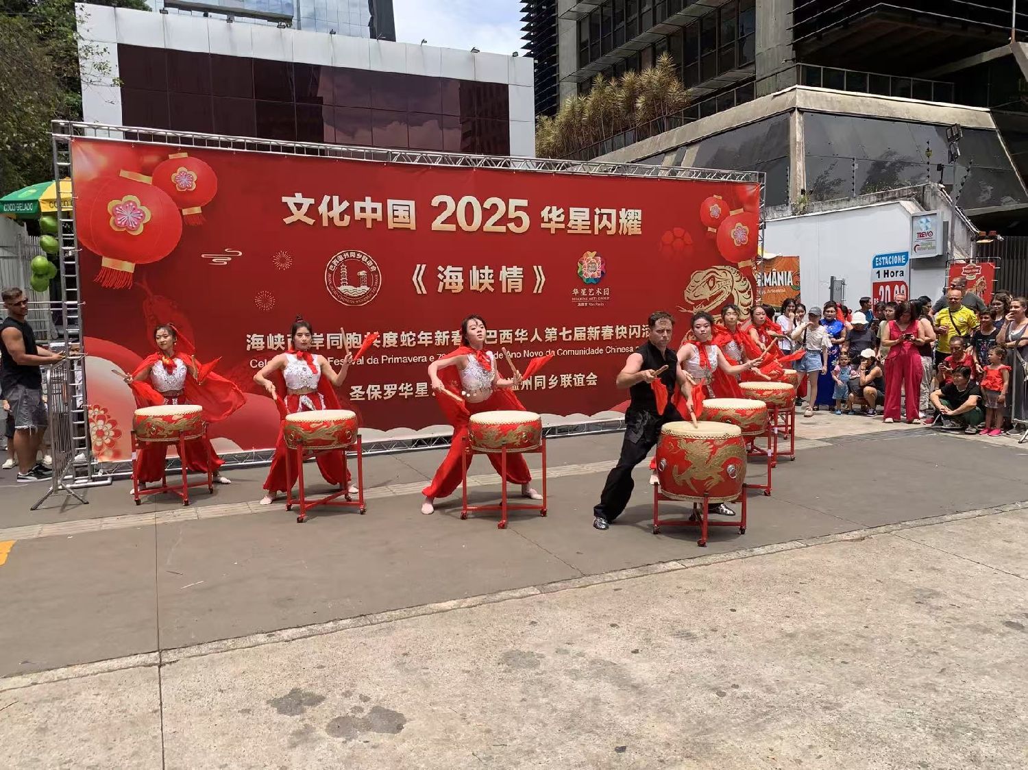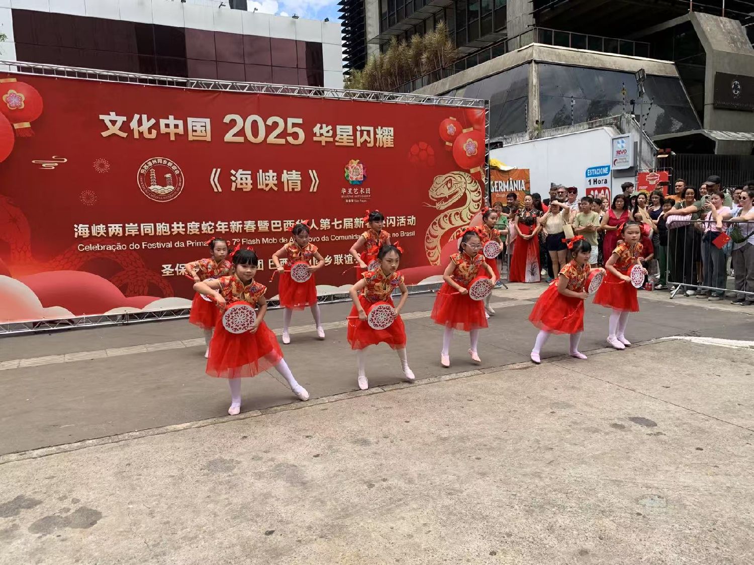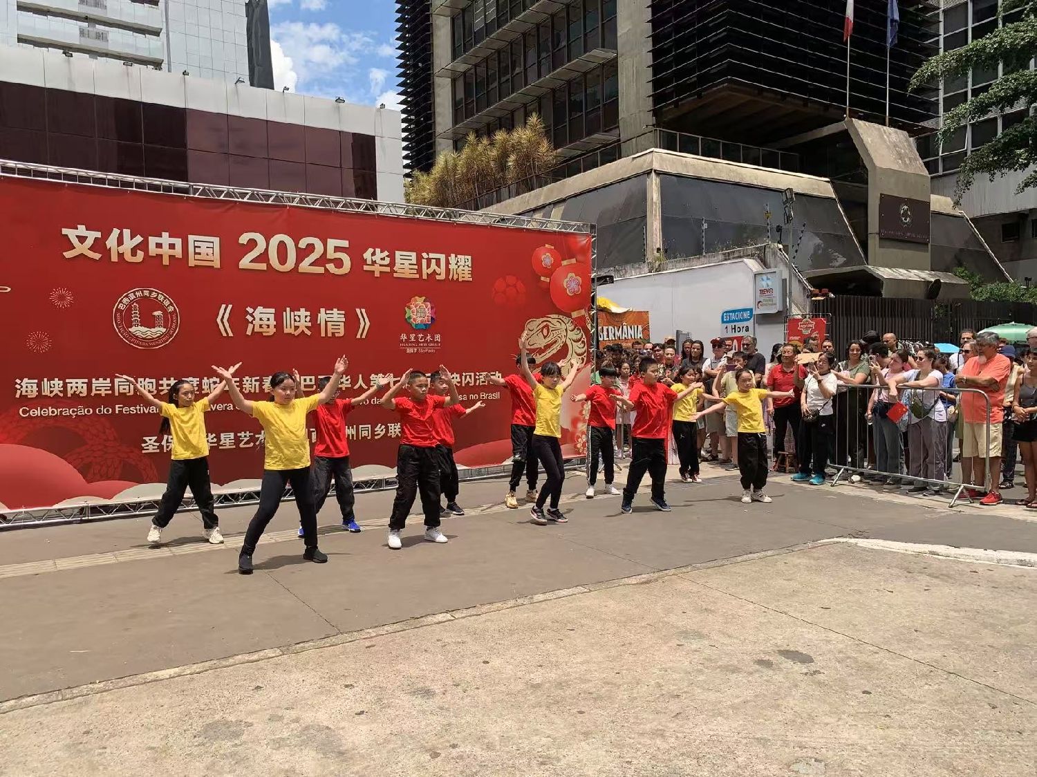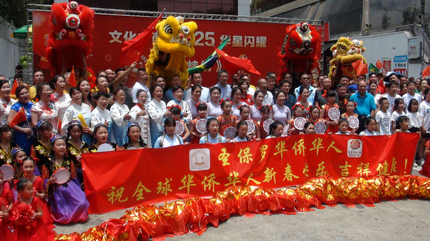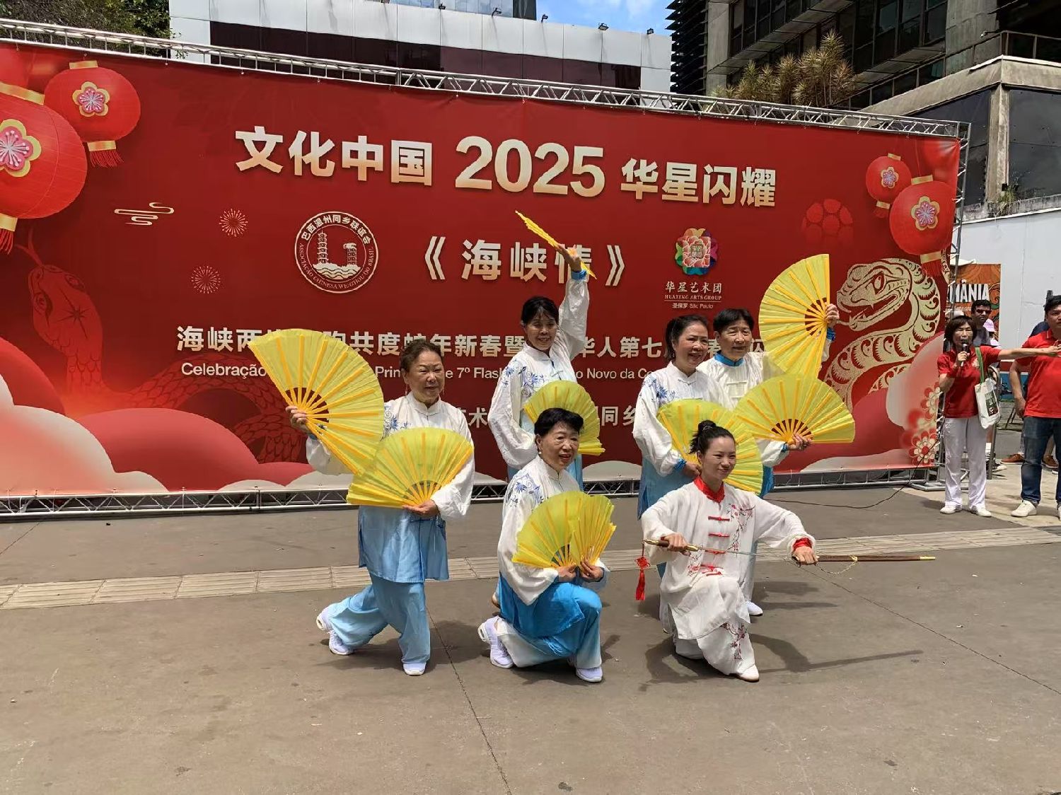 【南美侨网特约记者袁一平报道】由圣保罗华星艺术团与巴西温州同乡联谊会携手各侨团及华文学校举办的“海峡情“主题第七届中华文化新春快闪活动,1月26日中午在圣保罗市保利斯达大街完美商场前圆满收官。中国驻圣保罗总领事余鹏、副总领事田玉震、领侨处主任荣强、巴西华人协会会长叶周永及各侨团侨领观赏了精彩的节目,迎来2025“非遗”春节面向巴西广大民众的首场文化盛筵。