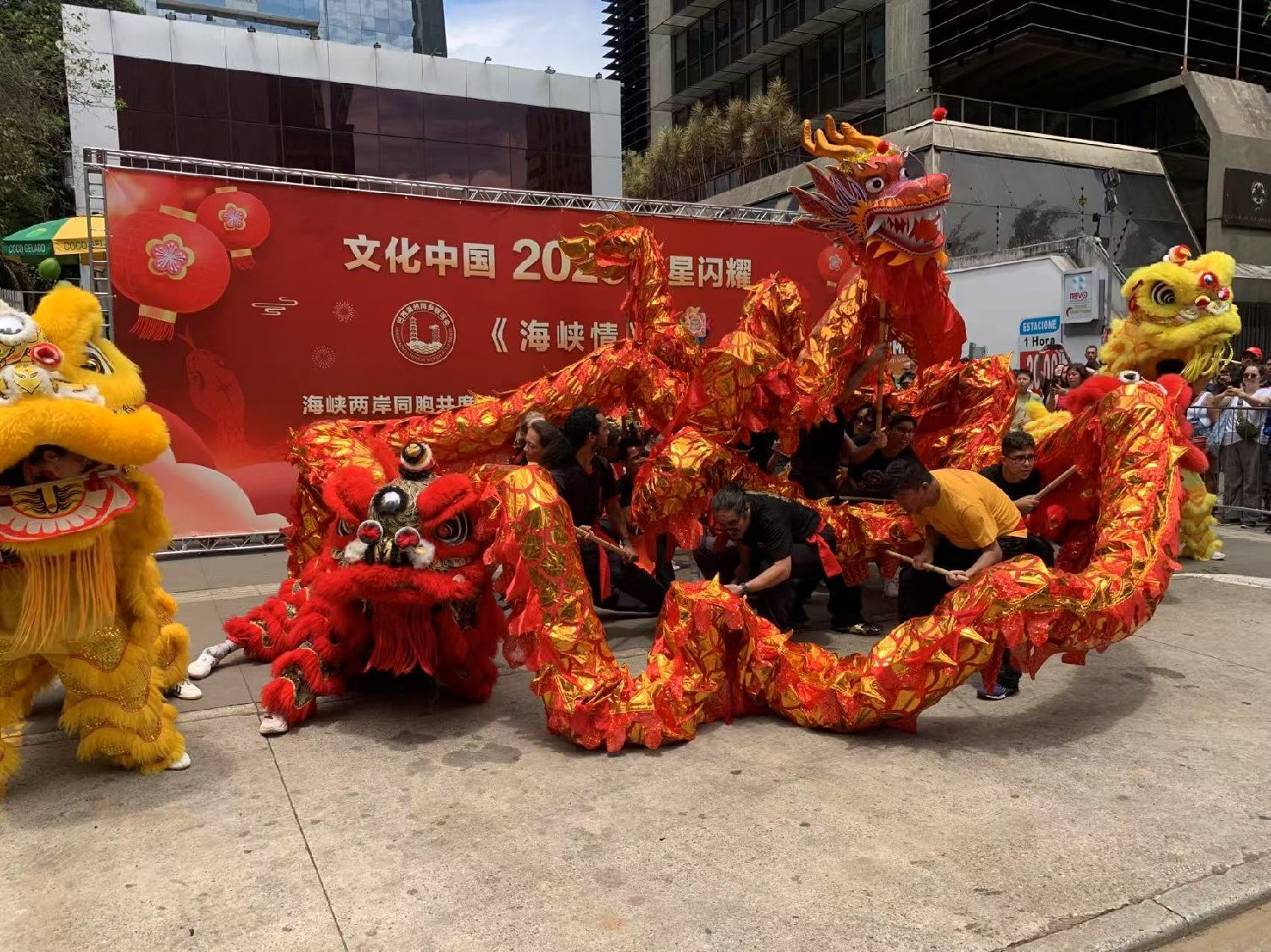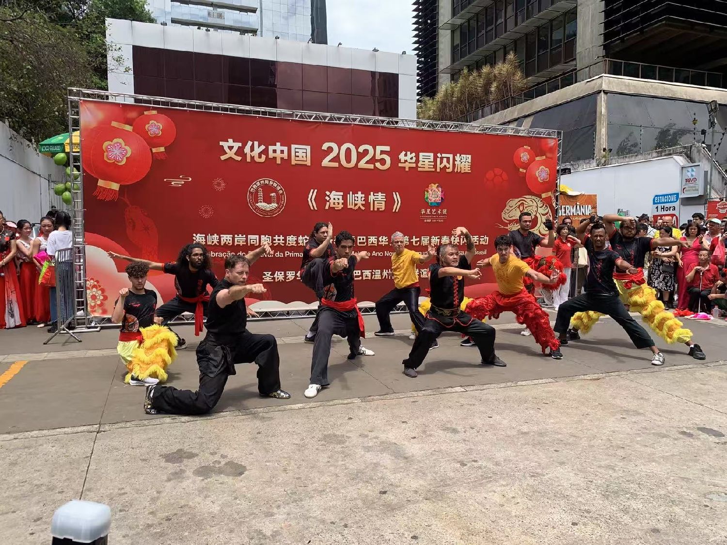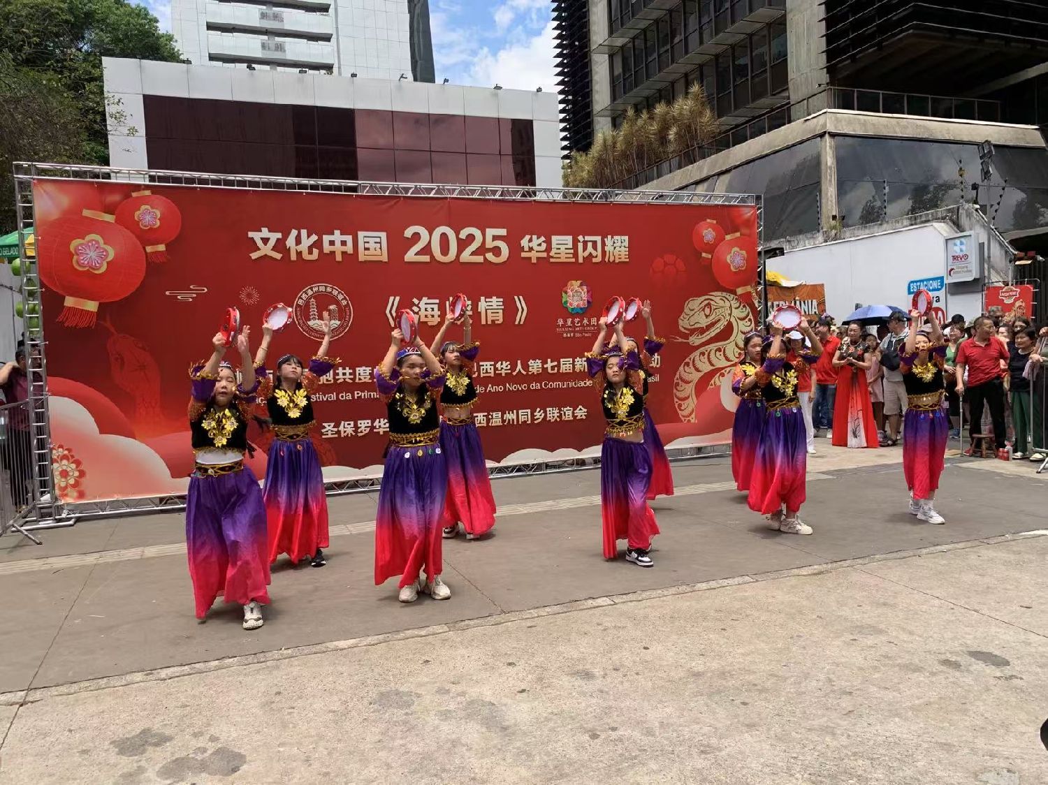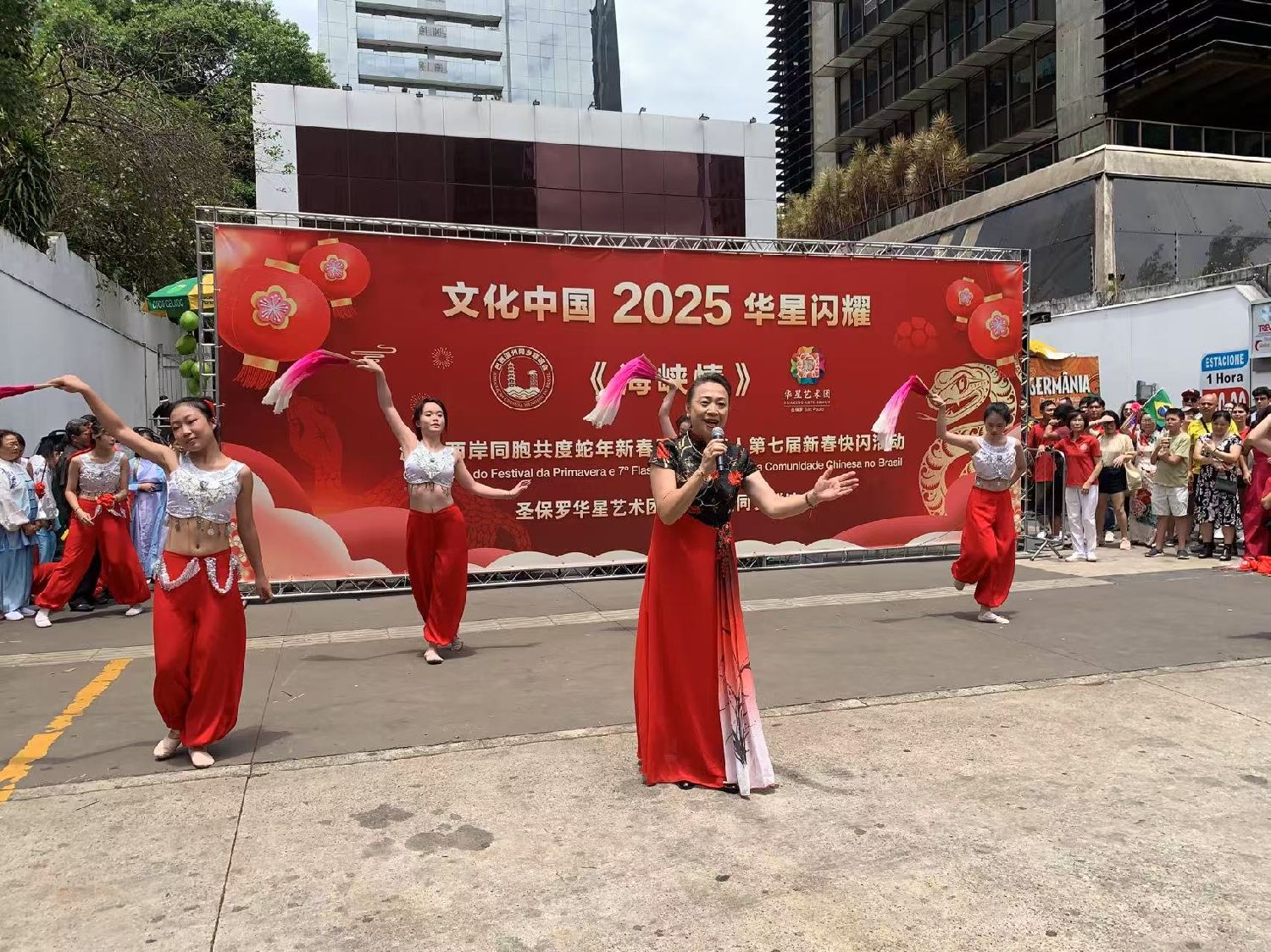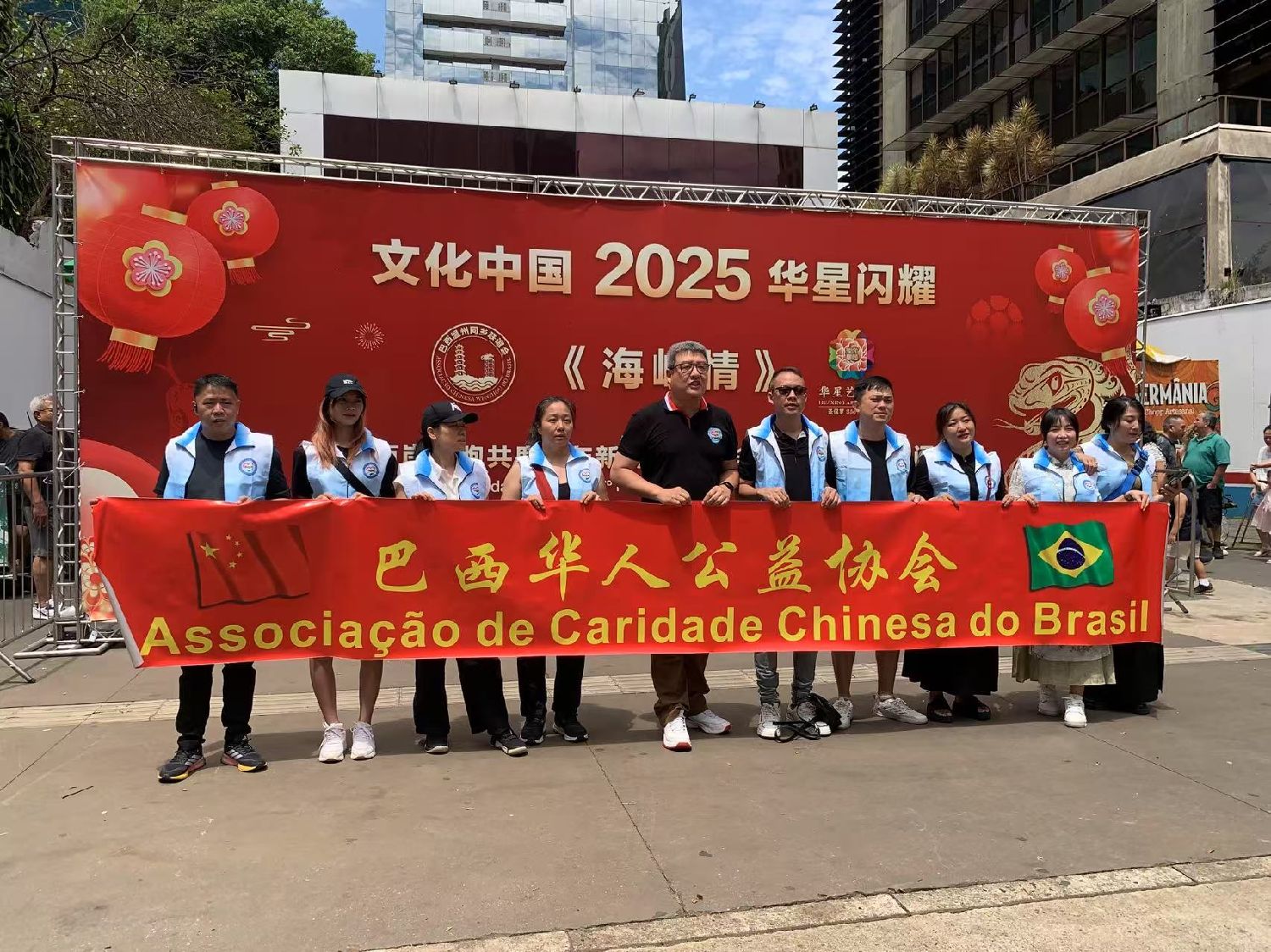 【南美侨网特约记者袁一平报道】由圣保罗华星艺术团与巴西温州同乡联谊会携手各侨团及华文学校举办的“海峡情“主题第七届中华文化新春快闪活动,1月26日中午在圣保罗市保利斯达大街完美商场前圆满收官。中国驻圣保罗总领事余鹏、副总领事田玉震、领侨处主任荣强、巴西华人协会会长叶周永及各侨团侨领观赏了精彩的节目,迎来2025“非遗”春节面向巴西广大民众的首场文化盛筵。
