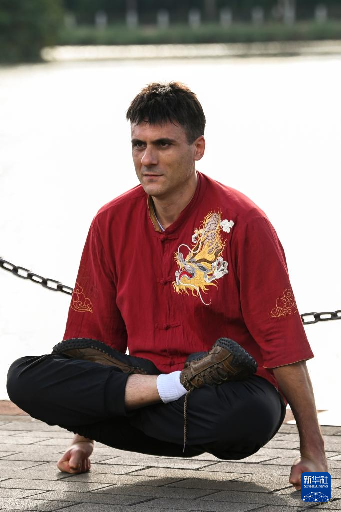 2008年,作为交换生的莫小龙前往北京中医药大学交流学习。交流期间,他认真完成了针灸课程,同时也抓住机会不断学习中国武术,在莫小龙看来,从中医的治病救人到中国武术的强身健体,这都是“功夫”。图为莫小龙指导学生武术动作(7月6日摄)。