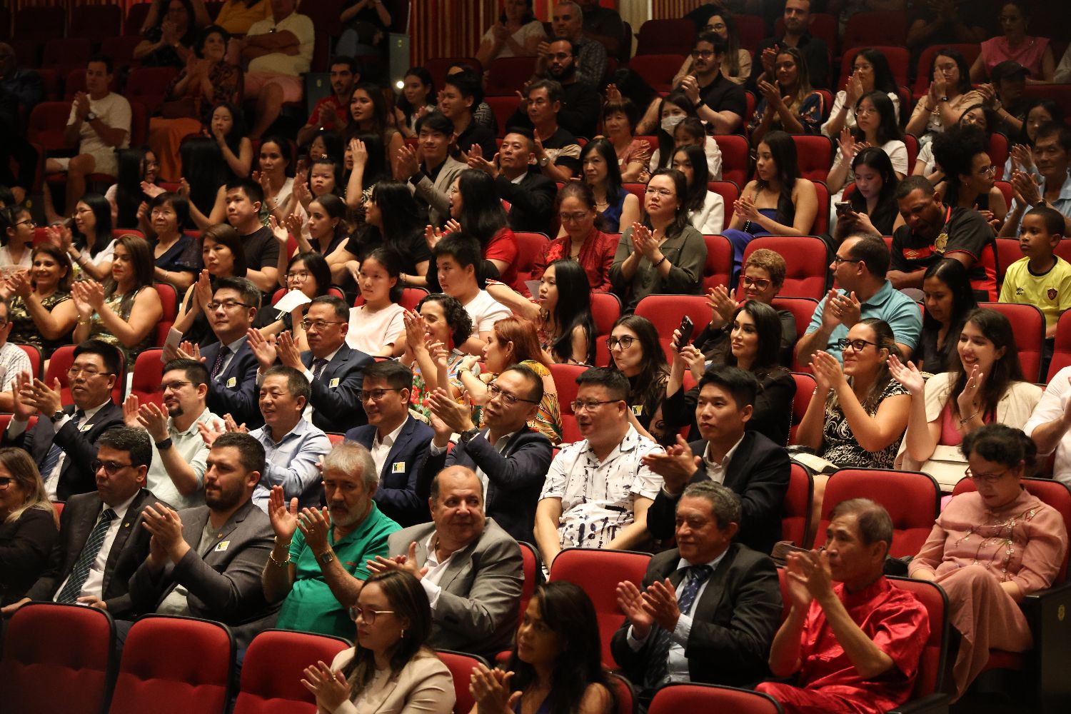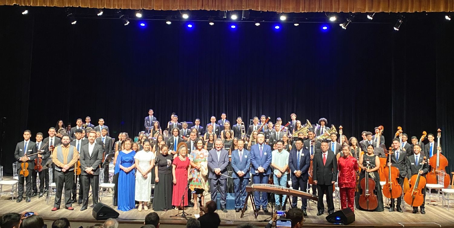 【南美侨报特约记者陈莉莉累西腓报道】8月10日晚上7时,由圣保罗亚洲文化中心和中国驻累西腓总领馆共同举办的庆祝中国和巴西建交50周年中巴音乐会,在累西腓市著名的Luiz Mendonça剧院成功举办,圣保罗亚洲文化中心总裁方三京、中国驻累西腓总领馆副总领事王可、伯南布哥州外事厅厅长阿吉亚尔(Rayane Aguiar)、累西腓市政府代表以及累西腓华侨华人协会会长卢功荣和当地侨胞、巴西友人等五百余人参加了活动。