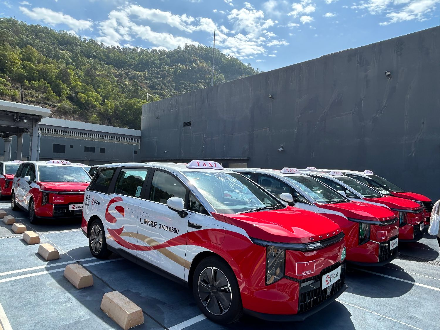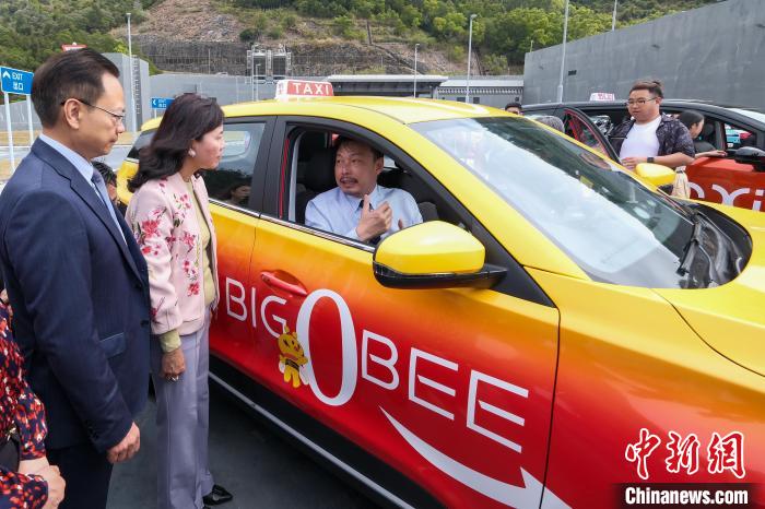 出席启动礼的嘉宾试乘“的士车队”车辆。中新社