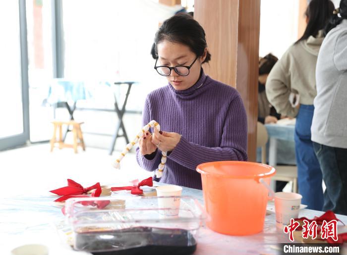 3月5日,市民在宁夏银川一扎染工作室体验红酒扎染。中新网