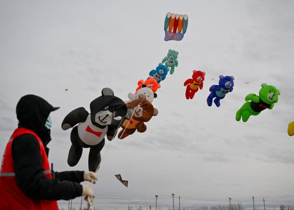 风筝爱好者放飞风筝。