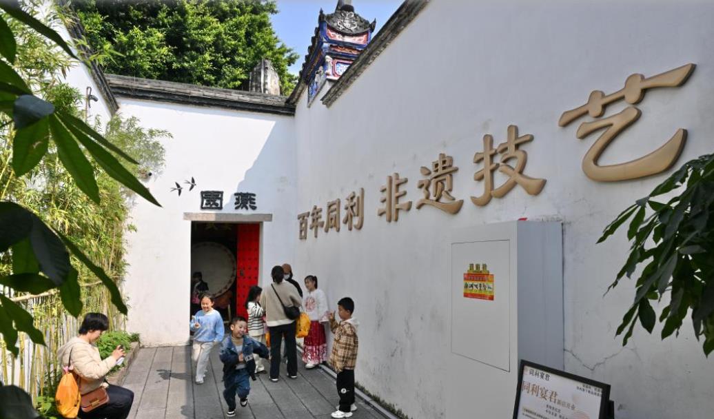 福建福州非遗文化绚烂多彩,涌现出寿山石雕、福州脱胎漆器髹饰技艺、木雕、软木画、油纸伞等众多国家级、省级非遗项目。图为3月8日,家长带领小朋友游览福州三坊七巷同利肉燕非遗文化体验馆。