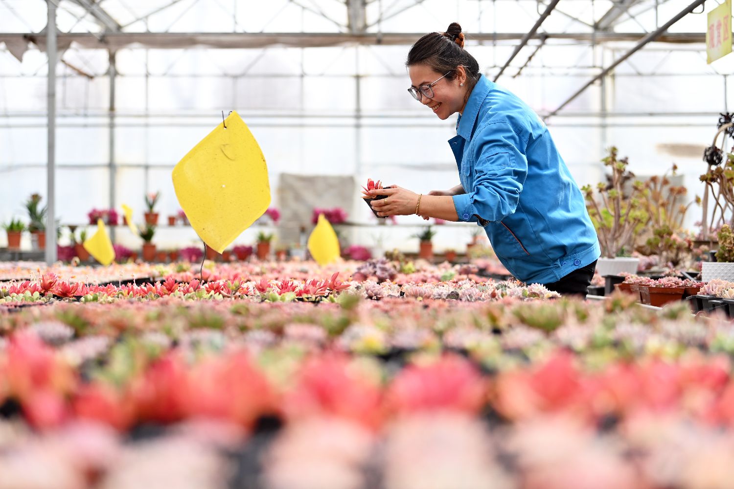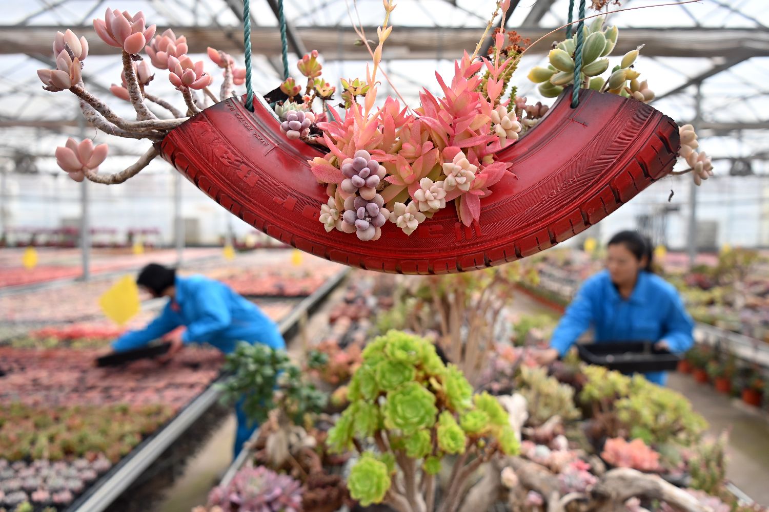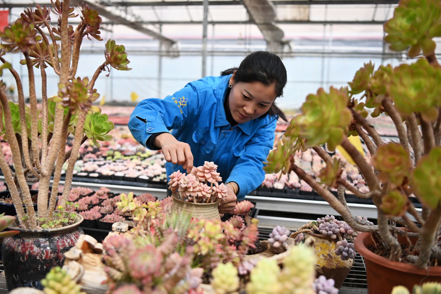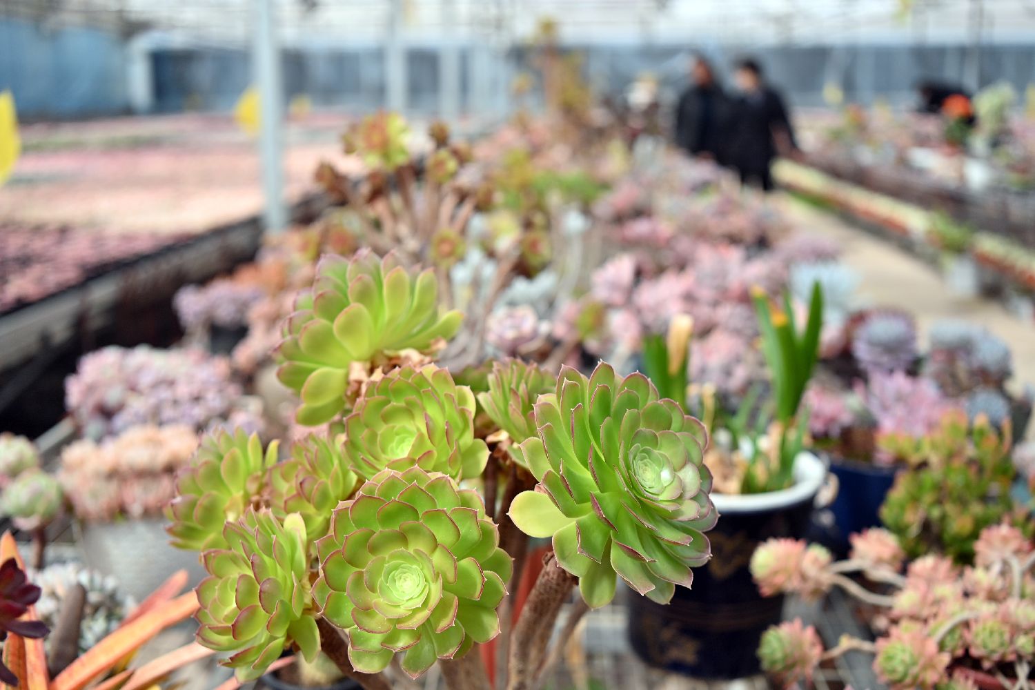 3月12日,在鑫源现代农业科技示范园种植大棚内的多肉植物。中新社