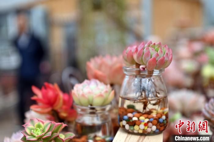 3月12日,在鑫源现代农业科技示范园种植大棚内的水培多肉植物。中新网
