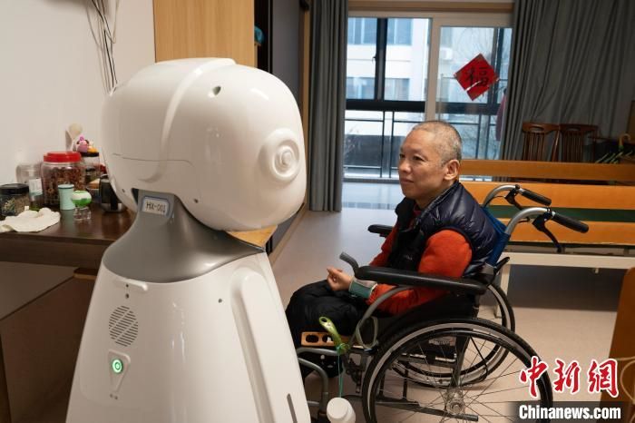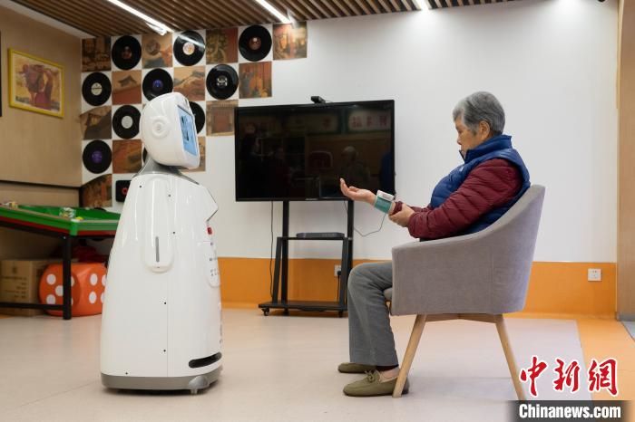 3月12日,在杭州西湖区社会福利中心,养老机器人陪伴老人聊天。中新网