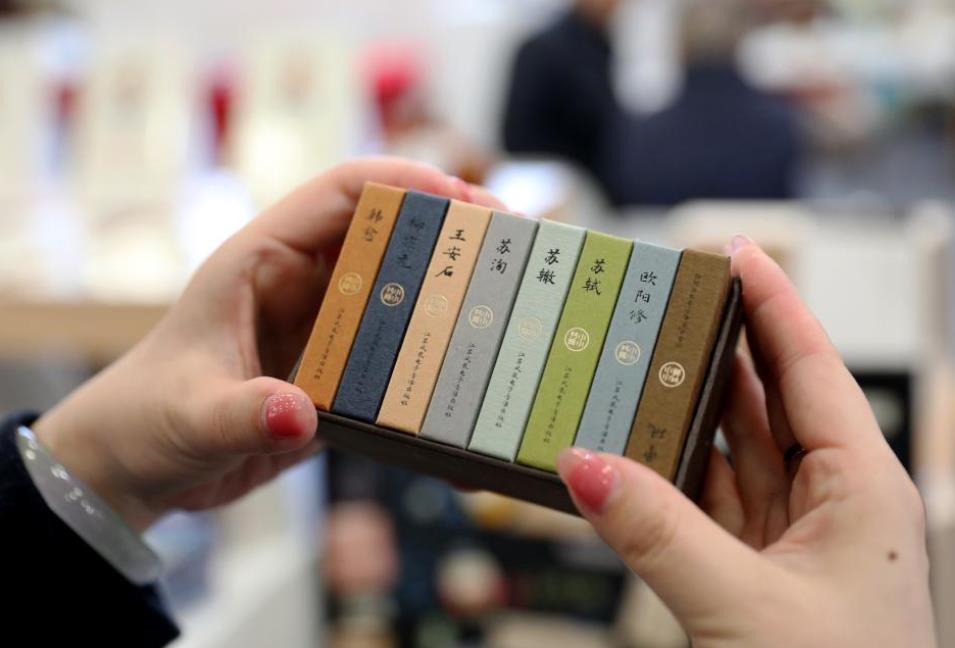 3月11日,中国展区拍摄的“小小书库”掌中书。