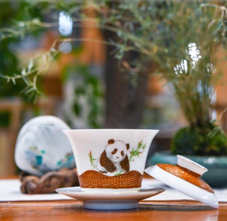 第二代“熊猫抱竹”盖碗茶杯。