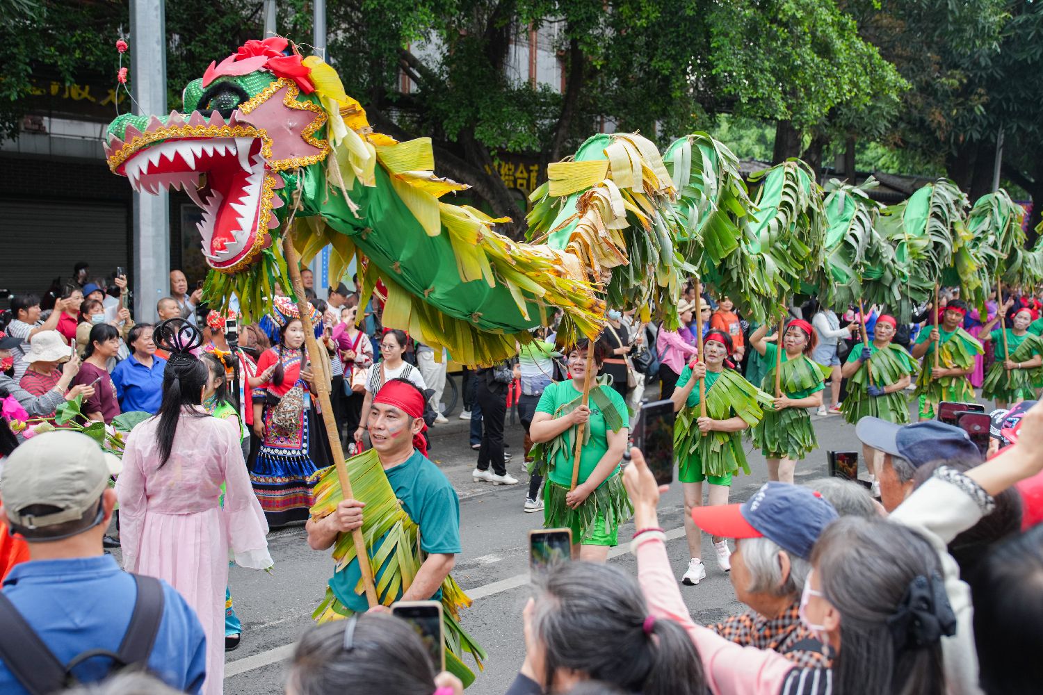匠人手举“芭蕉龙”巡游。中新社