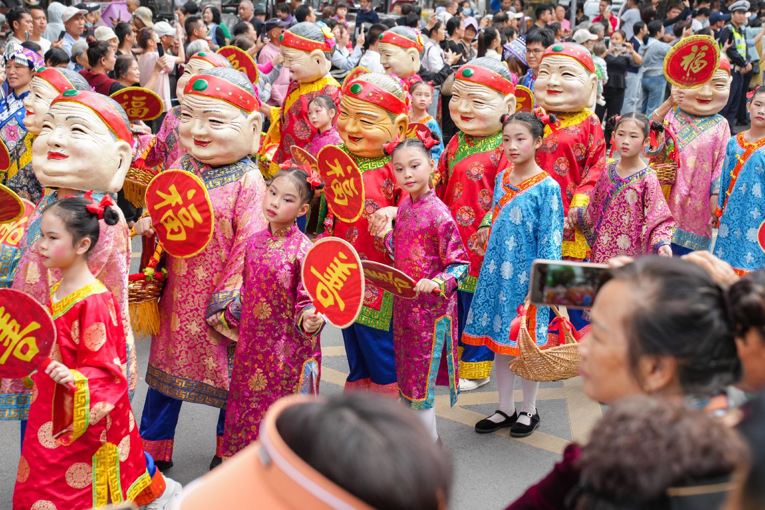“老花婆”带着“小花婆”巡游。中新社