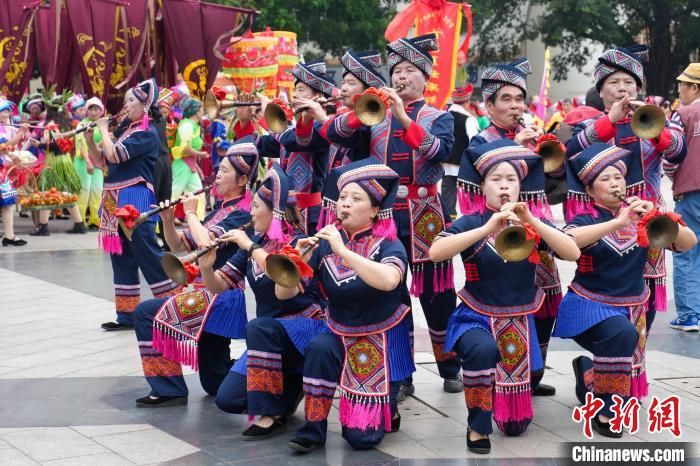 一支八音壮鼓队上演广西八音表演。中新网