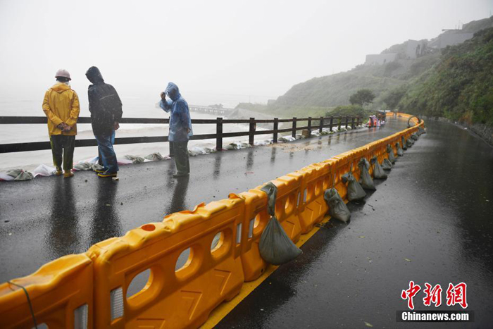 9月13日,浙江舟山,应急抢险人员在易发生险情的地段值守。