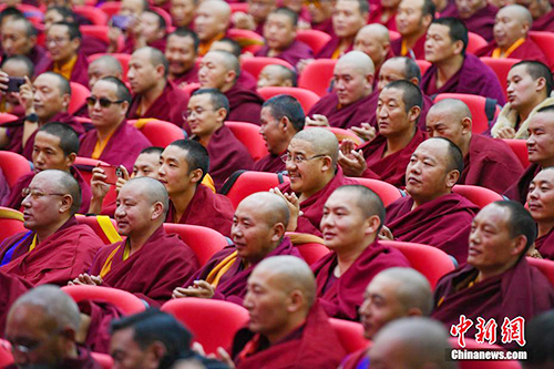 11月19日,西藏佛学院成立10周年庆祝活动在西藏自治区拉萨市曲水县聂当乡西藏佛学院隆重举行。图为西藏佛学院成立10周年庆祝活动现场。