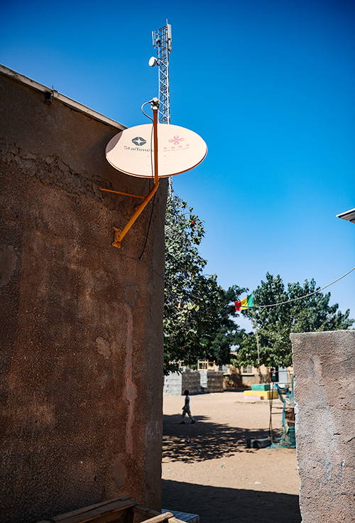 11月22日在塞内加尔达喀尔近郊的辛迪亚小学拍摄的卫星电视接收器。