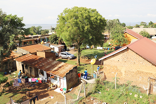 9月10日拍摄的乌干达中部瓦基索区的布韦伦加村,村中新安装了数字电视设备(航拍照片)。