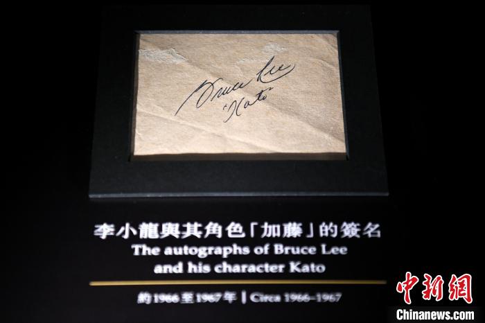 李小龙原名李镇藩,以“Bruce Lee”之名蜚声国际。李小龙出生于美国,在香港和美国求学,他创新地将中国功夫理念引入美国电视剧和电影。1971年返回香港后拍摄的电影《唐山大兄》《精武门》《猛龙过江》《龙争虎斗》和《死亡游戏》成为经典;他融会贯通,糅合咏春、拳击和剑击三家理念,创立“截拳道”,成就非凡。图为李小龙在《青蜂侠》中饰演的角色“加藤”的签名。李志华 摄