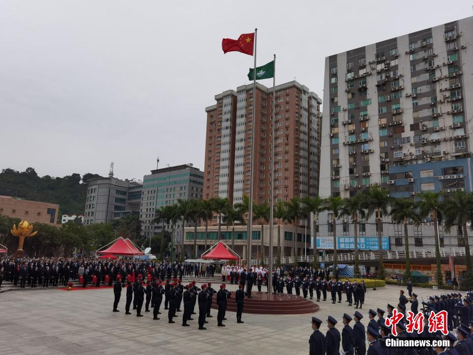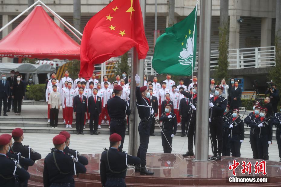 12月20日,澳门特区政府在金莲花广场举行升旗仪式,庆祝澳门回归22周年。内地奥运健儿访澳代表团参加升旗仪式。