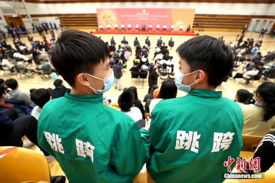 12月20日,内地奥运健儿访澳代表团在澳门奥体中心与当地青少年运动员代表进行对话交流。图为澳门小运动员参加交流活动。