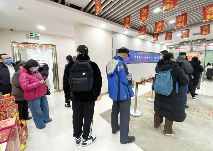 12月21日,市民在北京一家中国工商银行内排队兑换北京冬奥会纪念钞。南美侨报网特约记者卞程宣摄