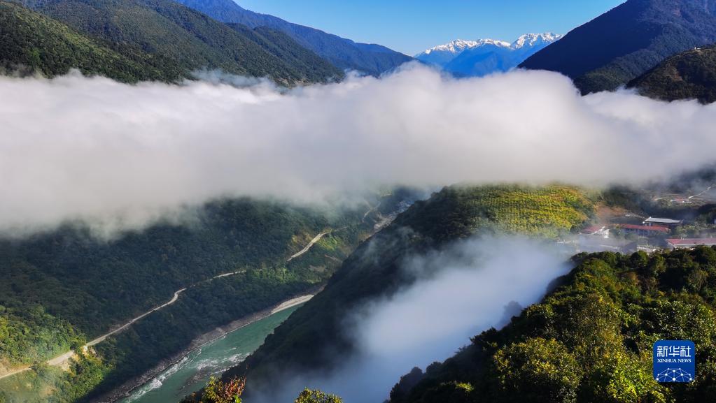 隆冬清晨的西藏墨脱,雅鲁藏布江蒸发的水气沿大峡谷奔涌流动,恍若梦境。图为12月21日在墨脱拍摄的晨景。
